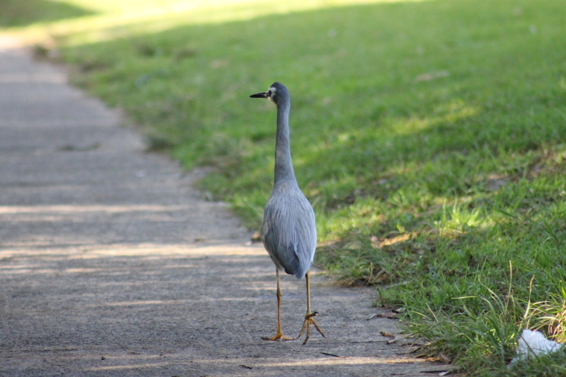 The penguins aren't the only birds you will find on our beaches and the tributaries that run into them - Narrabeen Lagoon is a paradise of darters, swans, egrets, herons - as are any sea bound rock platform or even a path beside a creek - have a look at this white-faced heron strolling casually alongside the Careel creek path behind Barrenjoey High School a few years back, 'escorting' or leading the photographer on: