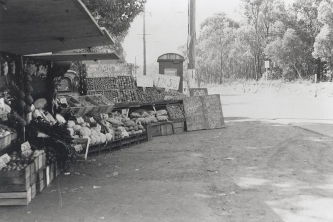 The corner of Pittwater Road (now Mona Vale Road) and Cowan Road, St. Ives, circa 1900 to 1909. Courtesy Ku-Ring-Gai Historical Society.