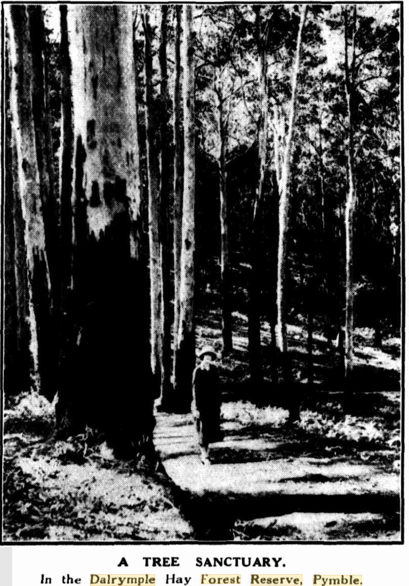 In April 1788 Australia's first Governor, Captain Arthur Phillip, led a reconnaissance party from Manly Cove upstream through the Stoney Creek (St Ives) area, seeking fertile land for growing crops. On this journey, he noted the tall trees which were to provide timber for the growing colony.