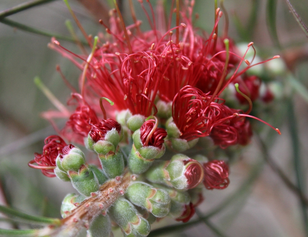 Flannel flowers are in abundance at present, and have been for weeks - with masses covering the hills. So too all the varieties of red bottlebrush are lighting up the bush along with many kinds of yellow bush peas.