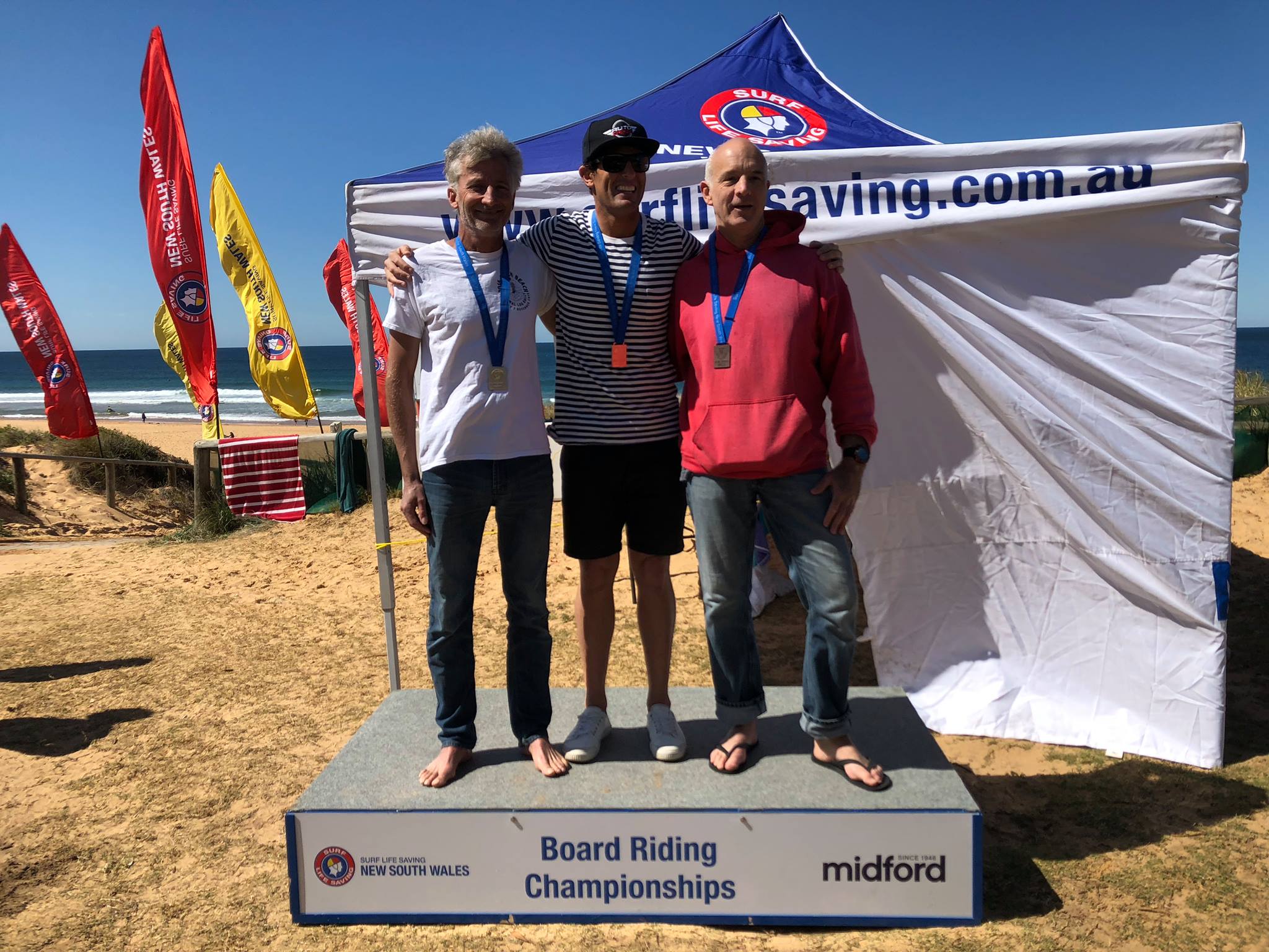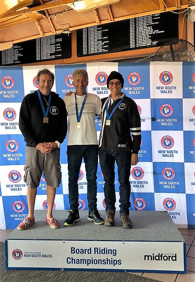 At 52 and 55 Grant and I happy to surf the Open Final, NSW State SLSC Longboard Championships. We got Silver and Bronze with Harry taking Gold.