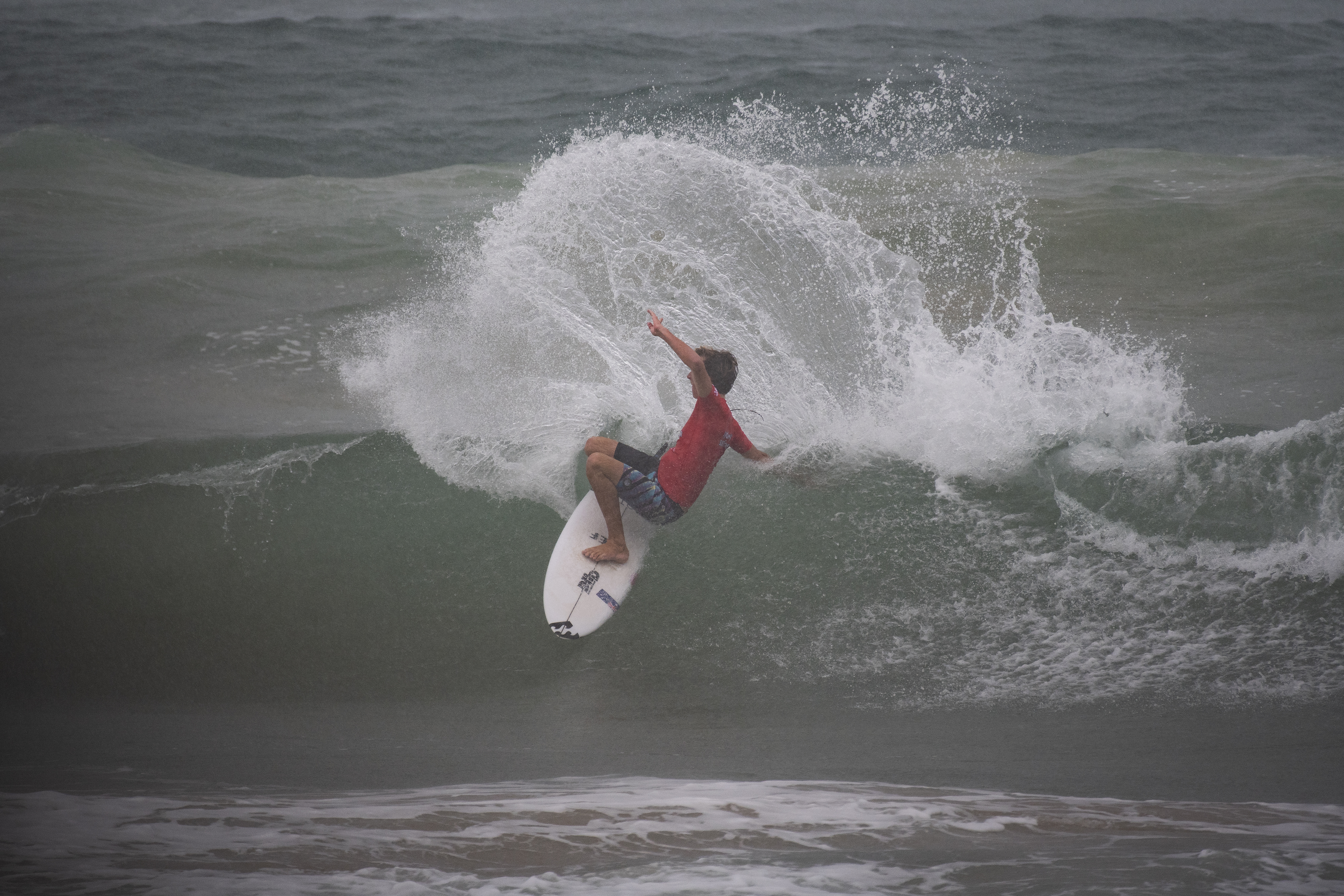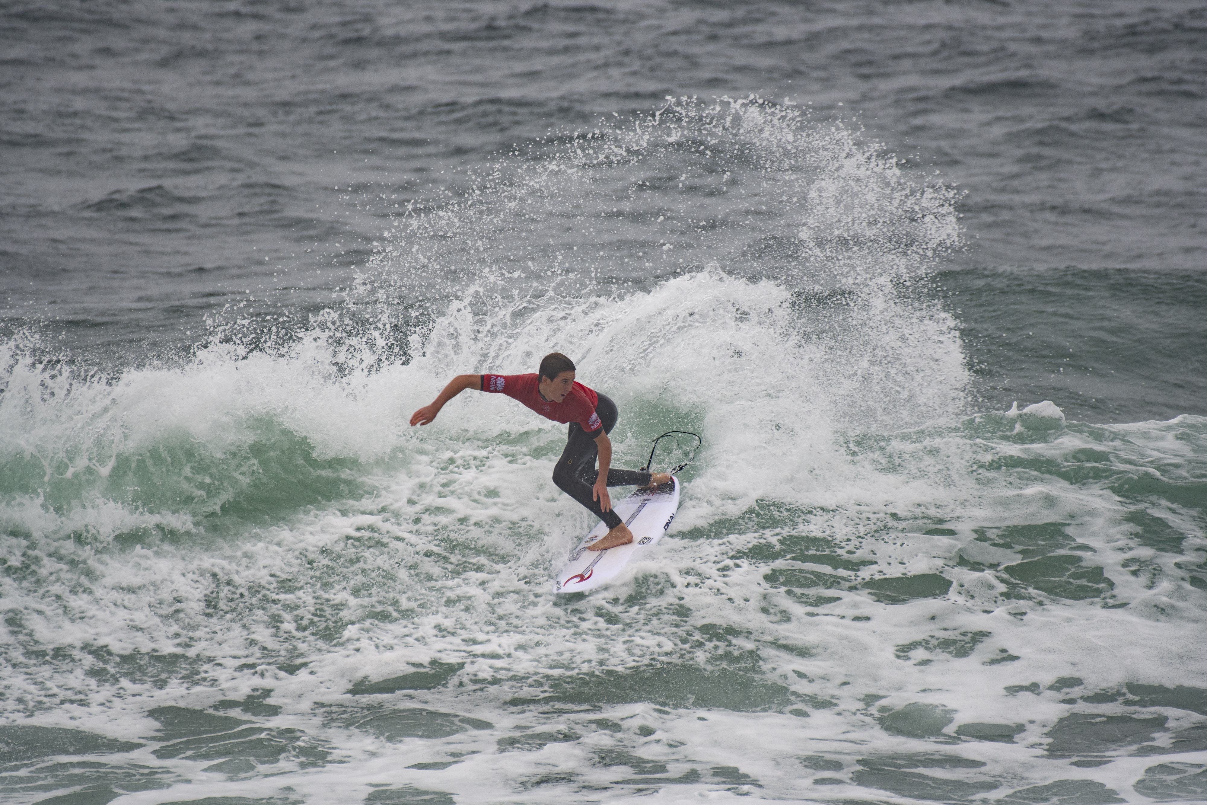 Perennial Pro Junior standout Xavier Huxtable (Jan Juc, Vic) showed his competence in shifty beachbreak conditions, claiming an impressive victory in his opening round. In conditions that shared an uncanny resemblance to his local Victorian beachbreak, the natural-footer was able to find a handful of longer-running lefthanders that allowed him to punch of a variety of decent backside cracks and finish the heat with a respectable 12.25 two-wave heat total.