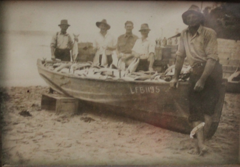 The fish in boat is mullet – taken at South Palm Beach; left to right: Bob Robinson Snr., Clarrie Witchard (brother in law) Jack Robinson, Henry Robinson (brothers) and Bob Robinson (Henry and Jack’s dad – Peter’s grandfather). Clarrie married Eunice ‘Tippy’ Robinson, Henry’s sister. Photo courtesy Robinson family
