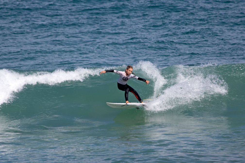 Local surfer Rosie Smart (Sawtell, NSW) flew the Coffs Harbour flag for her local supporters on the beach posting an impressive 12.84 heat total in her opening Under-14 Girls heat. Smart will be one of the front-runners going into the second round of the division.