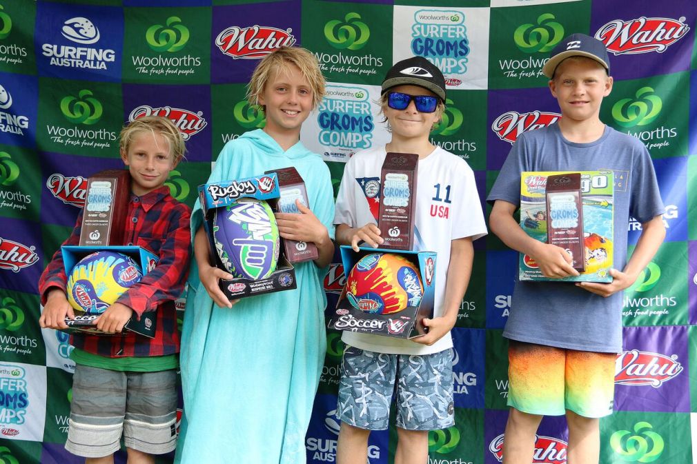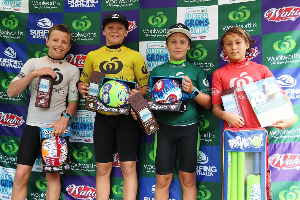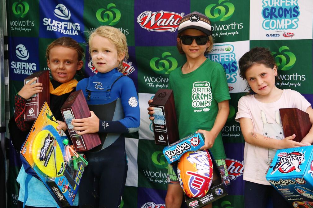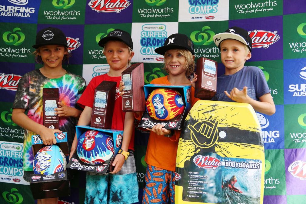 CHAMPIONS CROWNED AT THE WOOLWORTHS SURFER GROMS COMP PRES. BY WAHU AT COFFS HARBOUR