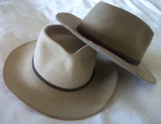 Over 100 different styles, various colours and brim widths are produced in the Akubra hat range. The ones shown here, a standard and one from The Heritage Collection, this one dubbed ‘Banjo Paterson’ and named for the Bush Poet of The Man from Snow River, is one of four in this collection, the others being Lawson, Flinders, Burke and Wills who were all explorers and in different colours. These were release in 2008.