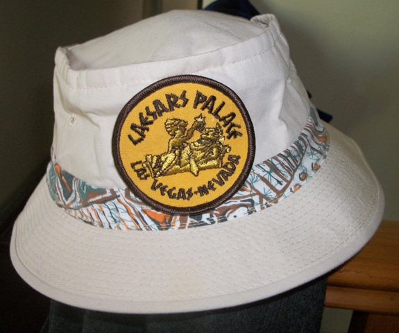 Also of interest, to hat collectors, is this ‘bucket hat’ (?) brought home to Oz from Caesar’s Palace, Las Vegas, Nevada, over 30 years ago. In 1962, Jay Sarno, a cabana motel owner, used US$35 million that had been lent to him by the Teamsters Central States Pension Fund to begin plans for a hotel on land owned by Kirk Kerkorian. Sarno would later act as designer of the hotel he planned to construct. Building of the 14-story Caesars Palace hotel began in 1962. That first tower would have 680 rooms on the 34 acre (138,000 m2) site. On December 31, 1967, Evel Knievel unsuccessfully tried to jump 141 feet (43 m) over the hotel's water fountain with his motorcycle. In 1989, Robbie Knievel successfully completed what his father could not do years before by completing the fountain jump. In 1969, a Federal Organized Crime Task Force accused the casino's financial manager, Jerome Zarowitz, of having ties with organized-crime figures in New York and New England. Although Zarowitz was never tried, the task force pressured Jay Sarno and his other investors to sell the casino. In 1969, Stuart and Clifford S. Perlman, founders of the Lum's chain of restaurants, purchased the hotel for $60 million. On July 15 of that year, executives lay ground on an expansion area of the hotel, and they buried a time capsule in the area, but the time capsule was stolen days later.