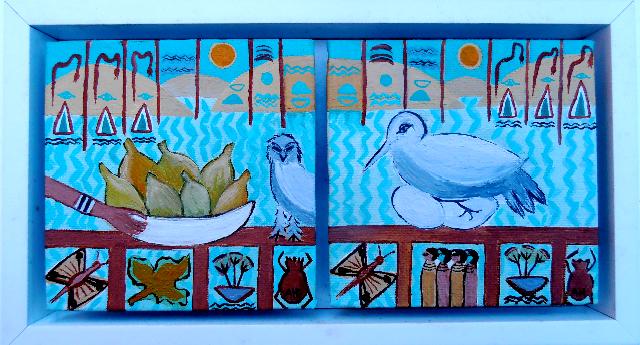 Title: "Curlew crossing Pittwater" Medium: Oil /board, Size : H 30 cm X 110