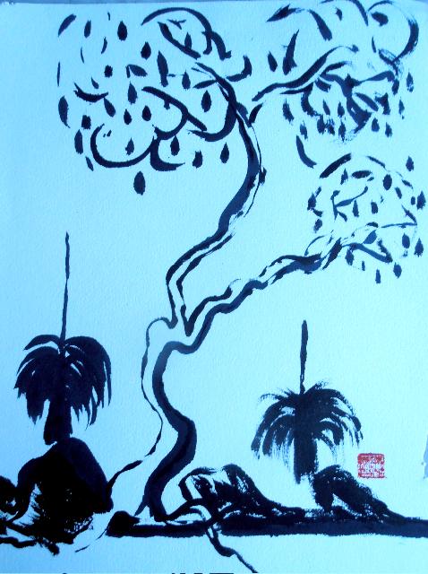 Title : "Angophora in Towlers Bay" Medium: Indian Ink on Arches paper , Size H 38 cm x 27