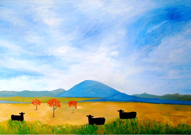 My inspiration is entwined with my love of Life and Art. Above all my paintings are an expression of my own personality and the unique place in which I live. I equate Mother Earth to my own body also giving birth to life. The landscape – Earth, Fire, Air and Water are integral to our existence and without care and management we humans will destroy our very being.