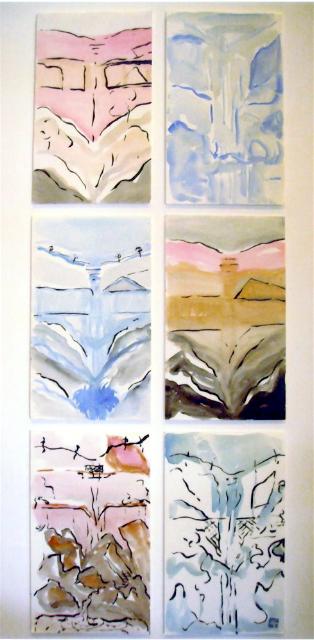 Title: " Linda Falls, Prelude in pen and ink " Medium: gouache and Indian ink Size each 6 x H 40 cm X 30 Framed H 110 cm X 55