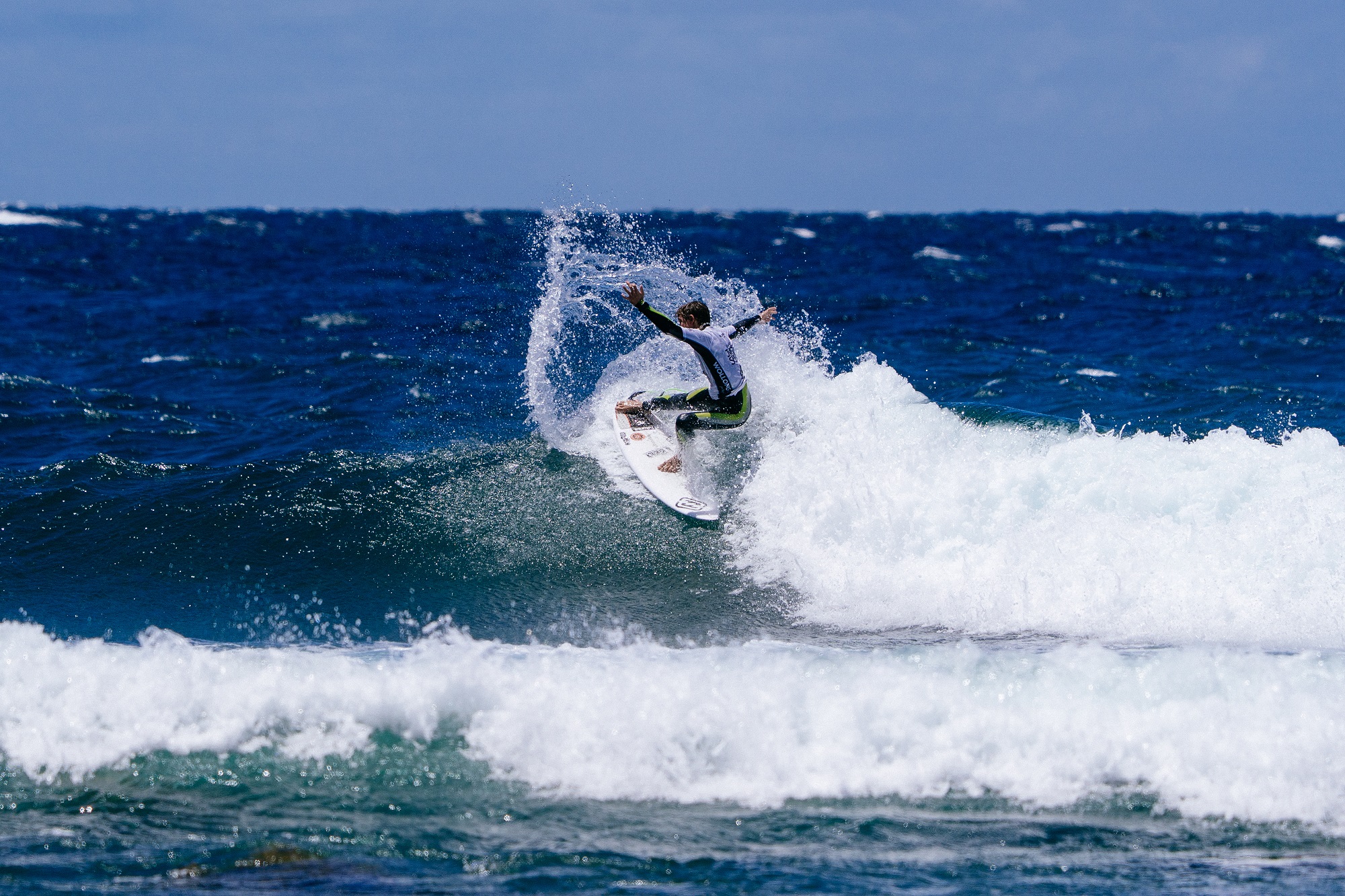 “I’d say I caught the bomb of the day and managed two nice turns on it. I was pretty stoked to get a solid score. I’m riding my Byrne Surfboards Prodigy model, and I just picked up two new ones for Aussies, and they’re going really well. We’ve got some big surf coming tomorrow, so fingers crossed for some pumping waves.