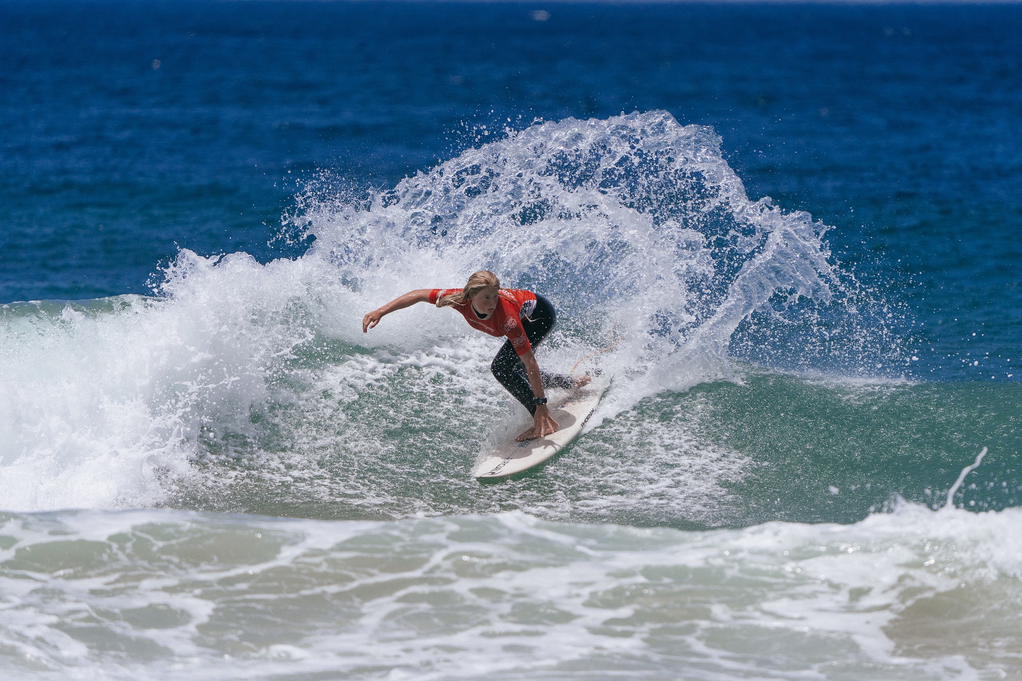 In the U18 Women’s, Alice Hogson (Kiama Downs, NSW), Ava Arghyros (Kingscliff, NSW), Sophie Wilkinson (Shoreham, VIC), Ruby Trew (Narrabeen, NSW), Poppy O’Reilly (Sydney, NSW) and Anna Huppatz (Bilinga, QLD) also advanced with confident, heat-winning displays.