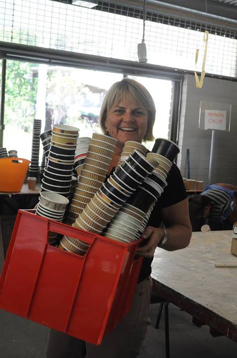 Artist Cindy Goode Milman pointed out that almost 100% of the cups are paper and thus bio-degradable, with only a single Styrofoam amongst the almost 3,000 collected and that was from country town in Grafton that somehow made it to our Manly’s Gallery used cup collection point.