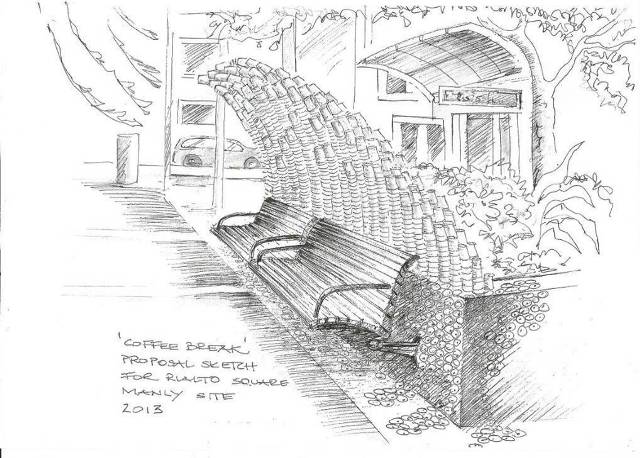 “Coffee Break” is an art installation, one of 25 artists’ projects for the Art in Odd Places festivals scheduled for 14, 15 September at Dee Why, The Strand and 21, 22 September at Manly, The Corso.