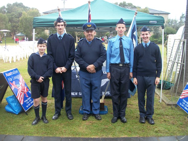 Australian Air League in Manly since 1934: Left to right; Zach Collins, Hamish Lumsdaine-Boyd, Jon Conrad(Air Activities Commissioner), Matija Simovic, Joey Montague