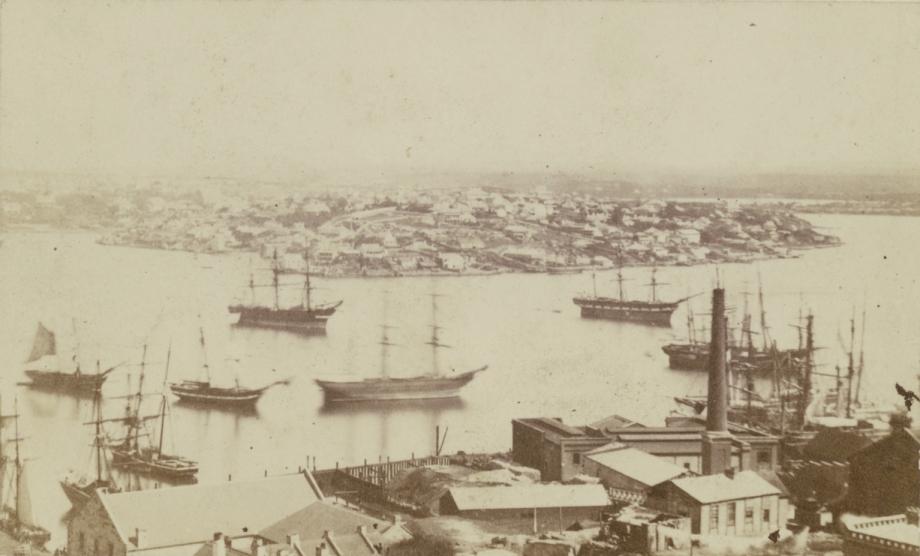 Campbell's Wharf and Sydney Cove from Dawes Point / possibly by Freeman Brothers or Prout - May 1864, Image No.: a128716, courtesy State Library of NSW.