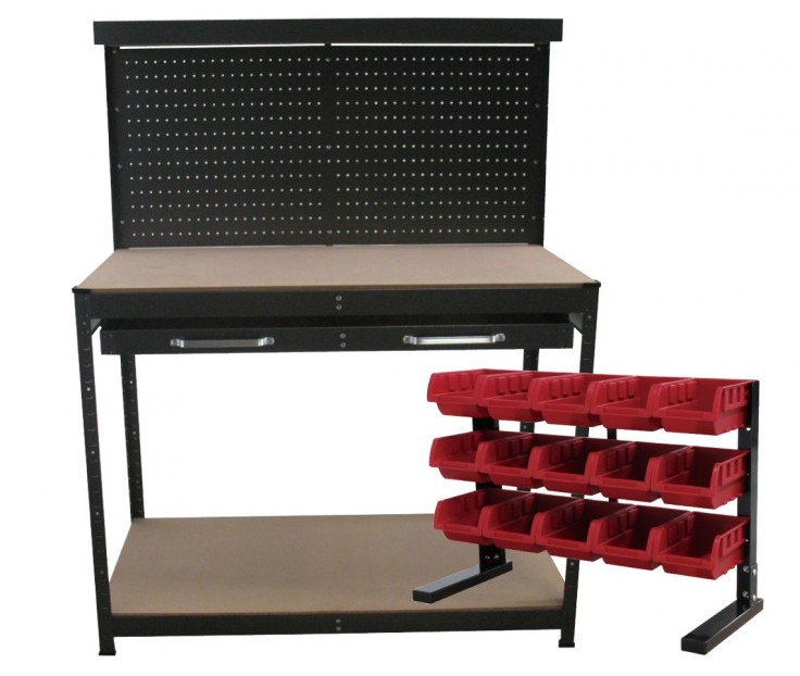 Workbench With Metal Pegboard with Bonus Storage Bin – $115.00: 568(L) x