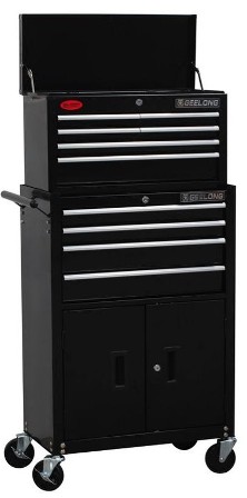 This Geelong Tool Box Chest is great value and on sale at present for $219.00 and with castors is a great way to store your tools and also move them to a work area or away from your work bench when that space is needed. • Trolley: 620(W) x 340(D) x 940(H)mm, Chest: 600(W) x 260(D) x 340(H)mm. Industrial powder coating. Aluminium trims.