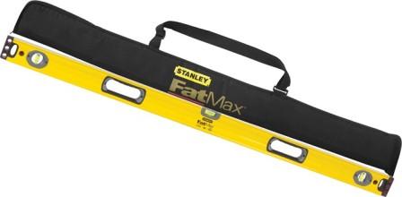 Right: Stanley Fatmax Level: $54.00 - 1200mm. Level accuracy of 0.0005in. Shock absorbent end caps. Includes carry bag.