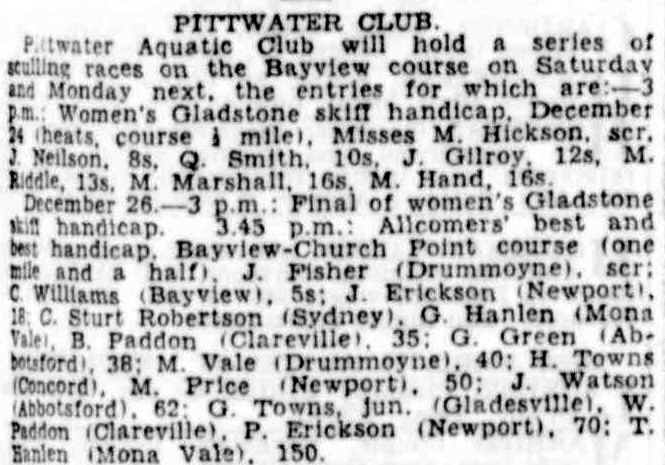 From their earliest times in Pittwater the Paddon family brought their rowing in races on the northern rivers with them