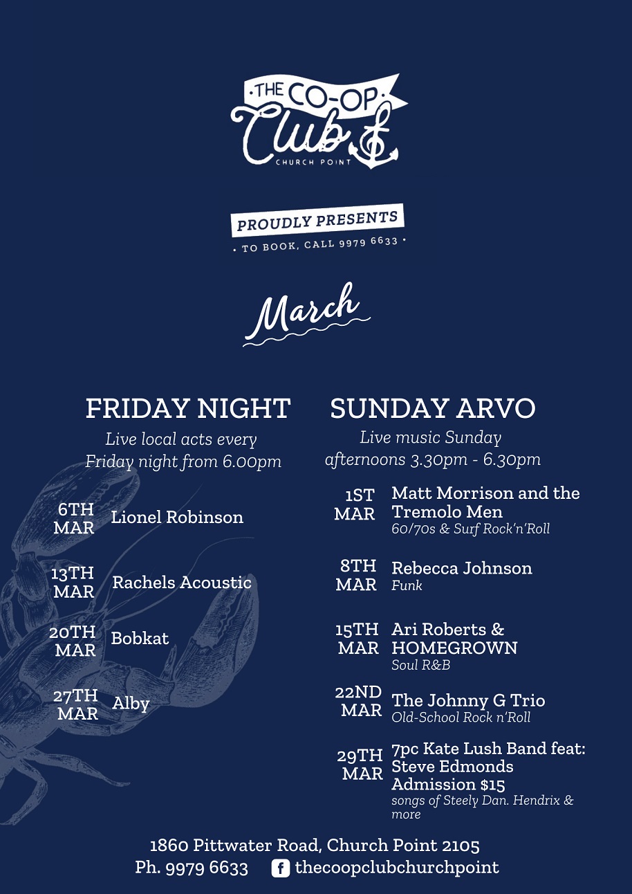 All Meetings are 7.45 for 8pm - 10pm- The Auditorium: Pittwater RSL Club, Mona Vale Road, Mona Vale 2103 - Family, friends and visitors are all welcome. Proudly Sponsored by Pittwater RSL Club