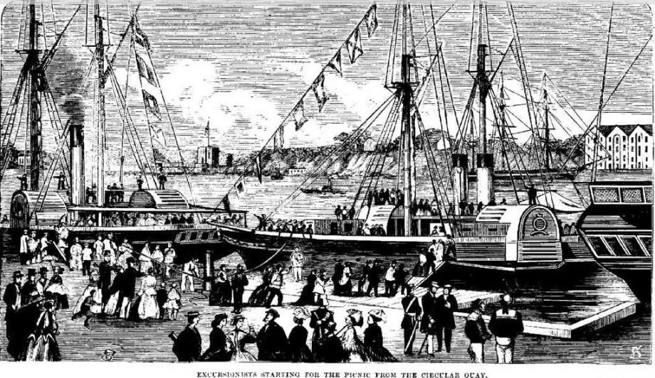 EXCURSIONISTS STARTING FOR THE PICNIC FROM THE CIRCULAR QUAY. THE RECENT ATTEMPT ON THE LIFE OF His Royal Highness THE DUKE OF EDINBURGH. (1868, April 20). Illustrated Sydney News (NSW : 1853 - 1872), p. 1 Supplement: SUPPLEMENT TO THE ILLUSTRATED SYDNEY NEWS. Retrieved fromhttp://nla.gov.au/nla.news-article63513927