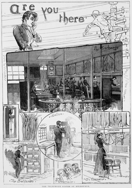 THE TELEPHONE SYSTEM OF MELBOURNE [VIC.] Date(s): September 1, 1890, from Illustrated Australian news: Monogram of George Rossi Ashton engraved in image ; woodcut engraving