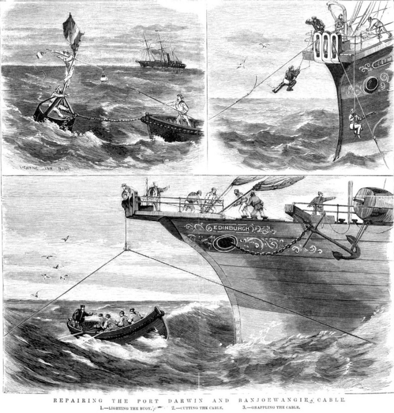 Repairing the Port Darwin and Banjoewangie cable, IAN29/11/76/193 from Australian Sketcher 1876, courtesy State Library of Victoria