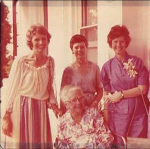 My mother Nell Gillham, in wheelchair, and my 2 sisters. L to R Herminie, Mary and Jenny (Herminie in skirt with vertical stripes)