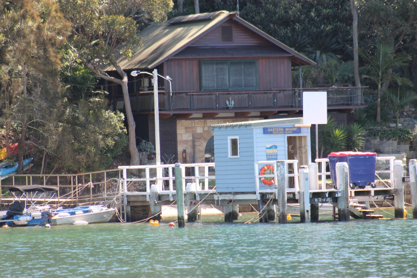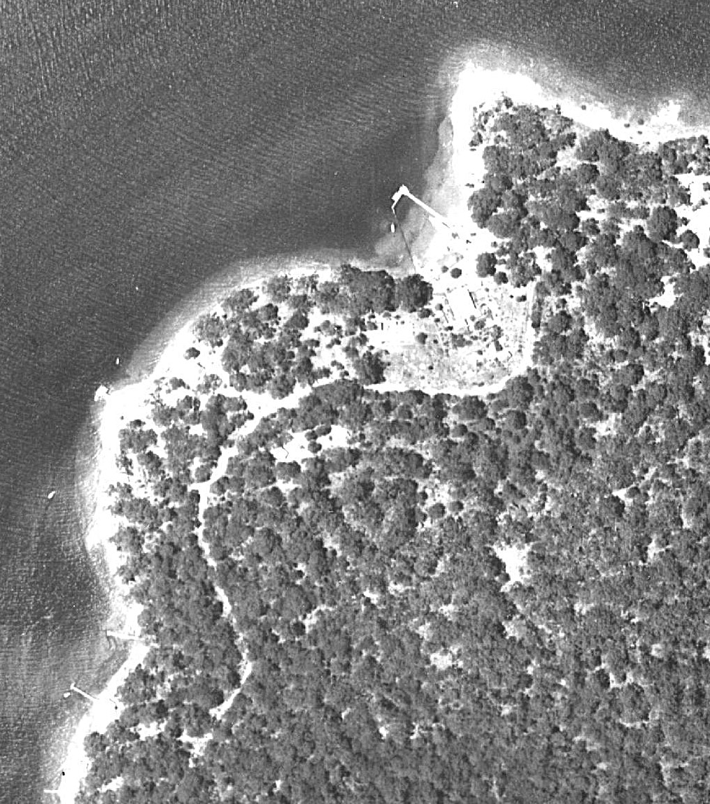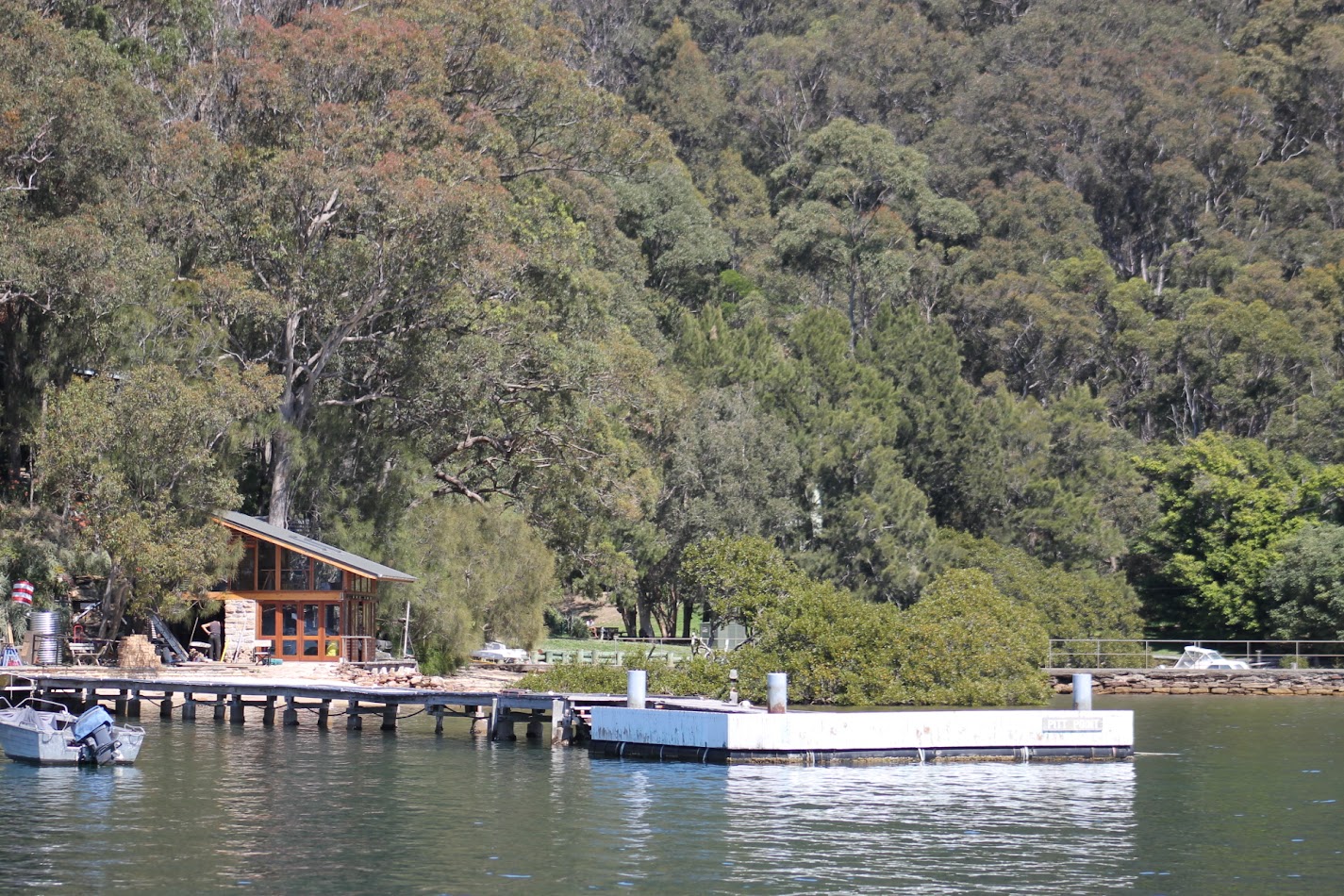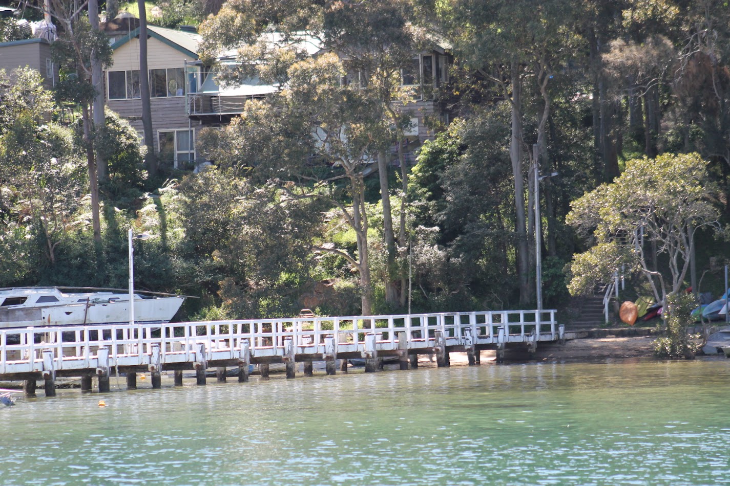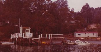 Bob Blackwood and Charles Miller (Charlie), long-term residents of Scotland Island, recalled there were two tennis courts adjacent to where the wharf is and just above the wall and tidal area - where it is flat. These disappeared or fell into disrepair although some of the earliest aerials found show an imprint of where they once were. No one seems to know whether they were grass or concrete; grass courts seems to be the most likely. The council minutes of meetings from March 1924 record when they were about to be installed, or mowed. This is what gave the name to that wharf - 'Tennis Court wharf'.