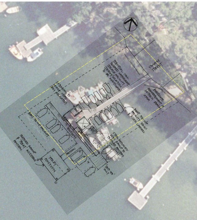 (23) The lessee shall not land any material nor erect any bins or similar structures between Williams' Boat shed and Church Point.