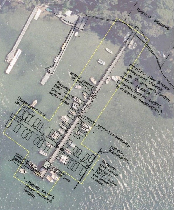 There are around 220 years between when Andrew Thompson used the north end of the island and current day site of Tennis Court Wharf as a place for salt pans and where the schooner Geordy was launched while another, in 1810, was 'in stocks', the 1884 application by former Mariners Joseph Benns and Charles Jenkins to 'Maintain a Jetty' facing west near today's Cargo Wharf site - which means there was already something there to land items on the island or take produce of some sort off the island, 'shipping' it - the 1924 subdivision of large blocks into suburban-sized blocks which saw Bells and Eastern wharves being built 'to provide access', and when Carols' Wharf was finished in 1978, to provide that same equitable 'access to' for residents.In between circa 1804/05, when a Land Grant to Thompson and the Autumn of 1978, legislation defined Permissive Occupancies and then a Special Lease. A permissive occupancy is a type of tenure that was issued under former legislation; this type of tenure was subsequently replaced by licences. Under the Crown Land Management Act 2016, existing permissive occupancies are referred to as licences.