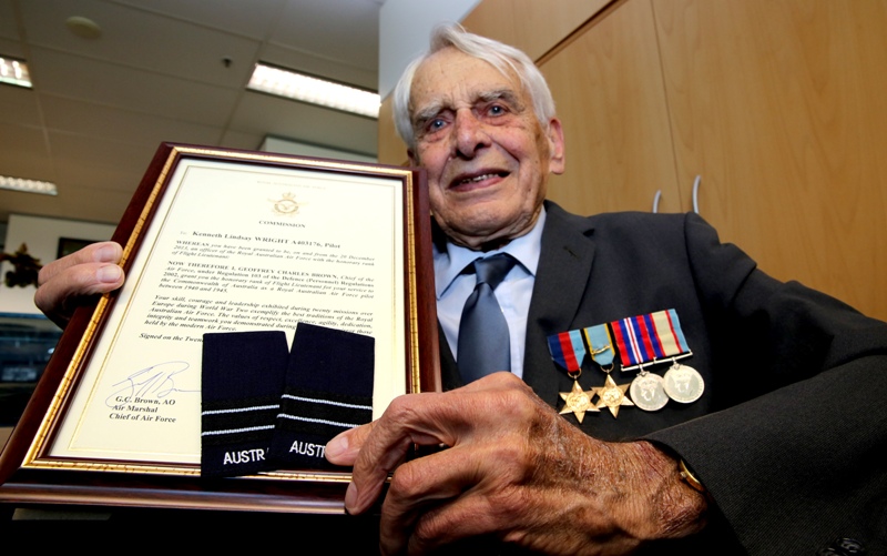 The Chief of Air Force, Air Marshal Geoff Brown AO today, 20th of December 2013, presented an Honorary Rank of Flight Lieutenant (FLTLT) to World War II pilot Ken Wright.