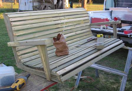With Summer soon to cool off as we head into Autumn, the golden parts of the year are best appreciated in end of day outdoor breezes. Few things beat the relaxation of sitting back in the shade passing an evening in a porch swing. A swing you've made yourself. It’s part rocking chair, part park bench – if your verandah is not wide enough, put it out in the garden in a shady spot on a frame. To have some shade, attach a canvas shade cloth roof. This is similar to the Park Bench for a Garden run earlier in this Summer’s Garden Furniture You Can Make series and as with that item, choosing woods and fittings to suit the environment you’re in will ensure you have a high quality, low maintenance finished item.