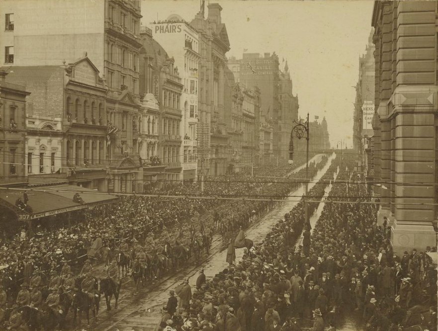 1st. Australian Division leaving Melbourne 1914, State Library of Victoria Picture: 302133