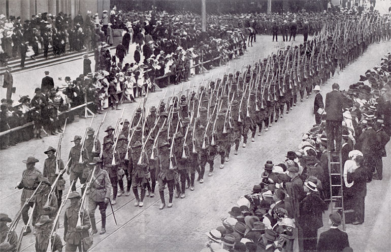 The 16th Battalion (AIF) marching through Melbourne in 1914