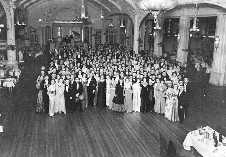 Frills and frocks were the order of the day. Ballrooms had ‘Ladies retiring Rooms’ and ‘Men’s Smoking Rooms’. Descriptions of the gowns worn were as important as listing the who’s who among those who attended. Reports that first appeared in sections of papers dedicated to women’s interests soon were shifted to social calendar columns. The more severe lines of women’s fashions during the ‘Flapper’ 20’s gave way to more realistic rounded figures in the 30’s. One fashion trend seemed to dictate that modern ladies acquire a chiffon handkerchief to drape over a partner’s shoulder.