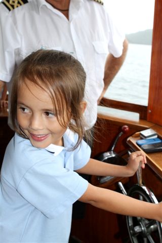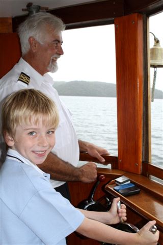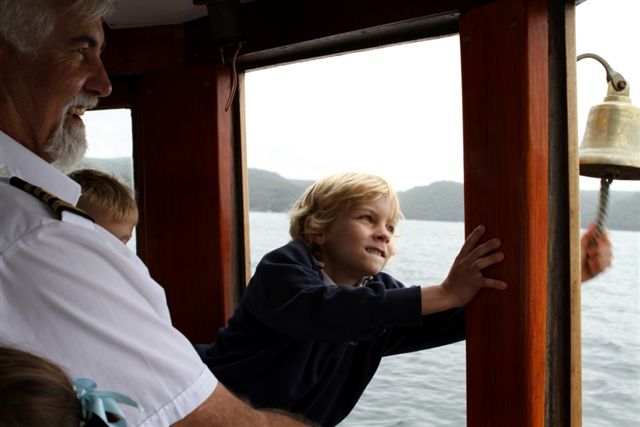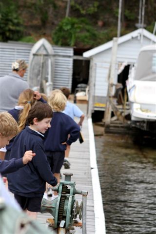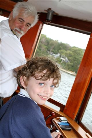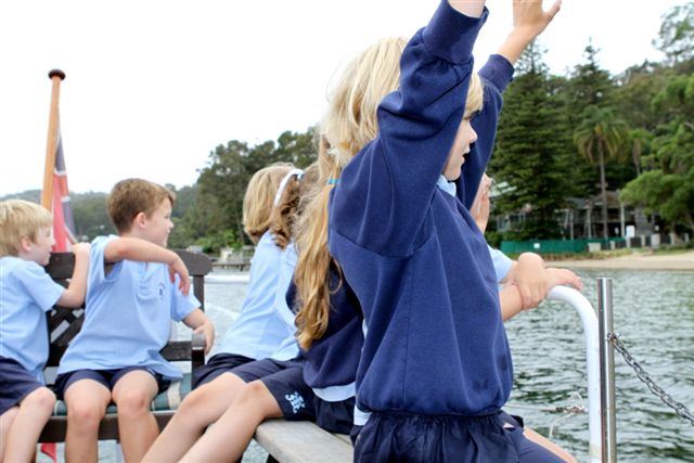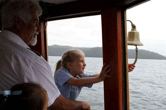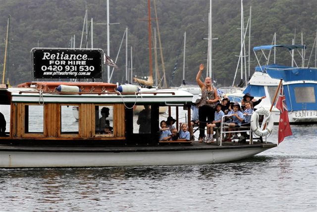 The brief was to explore the working side of Pittwater and we were able to on this 93 year old locally built Timber Estuary Ferry the MV Reliance. This classic old lady circumnavigated Scotland Island successfully with the assistance of 51 junior captains! The course was somewhat erratic, the bell got a proper work out and all enjoyed the experience and charm of the Reliance and were able to sight Slipways, Working Barges, the Fireboat, Water Taxi, Commuter boats, Public Wharf's and the many Jetty's and boat sheds that border the southern shores of Pittwater. All students were able to have a go at the helm wheel), supervised by Ferry Master Mark, Staff and Parents.