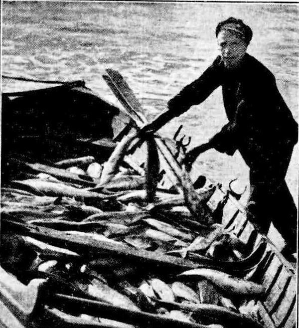 Then there's Billie ? , who has fished the length of Pittwater for forty years or more, who knows every bend and nook of it and can read its every mood. When a southerly blows and ruffles its surface he is dull and listless, but when a sharp 'nor'-easter' sweeps across the hills he is all activity — fish will be plentiful and in no time he'll be chugging past Great Mackerel Beach with its two uncharted graves, past the Basin, past Soldiers' Point. Soon the bucket in his launch will be filled with bream and leather-jacket, flounder, mackerel and whiting. He'll 'threadle' his hooks as he goes along, with juicy earthworms from near the mangrove swamps, for the fishing itch is in his makeup and will be till he dies.
