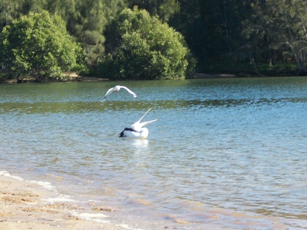 Down along the foreshore family’s picnicked, little boys climbed available trees, little girls frolicked in fairy outfits, dogs ran in and out of the water, a unicyclist peddled while tossing skittles and seagulls dived on a pelican (some bird skirmish over who had water-fishing rights), which attended their squawkings only long enough to snap a beak back and point out a size difference before serenely sailing by.