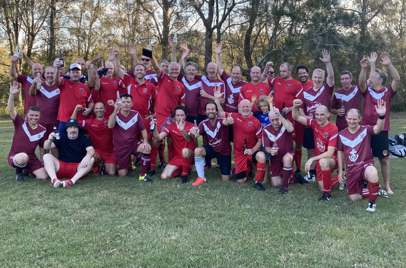 Ben and his fellow team mates were jumping all over the oceans' edge when it became apparent he'd won - just before they chaired him back up the beach.