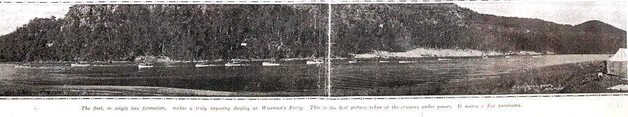 The fleet, comprising motor-driven boats of all shades and sizes, assembled in Farm Cove at about 2 o'clock. Large numbers of people lined the shores to admire the evolutions, and there was plenty to marvel at. Motor boats have not the grace of the gliding yacht, but they offer much to compensate for the lack of the beautiful. They are to the yacht as the funnelled steamer is to tho white winged sailing ship. They cleaved the waters of Farm Cove with a wonderful precision, skimming past the warships, driving recklessly across the bows of a sailing boat, curving and winding with a contemptuous disregard of wind and tide. Some were gay with colour, being competitors for the procession prize, and the majority were enlivened by the summer frocks of venturesome ladies.