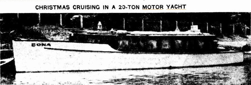 The launching ceremony was performed by the State Premier (Mr. J. H. Carruthers) who, as the vessel left the ways, broke a bottle of champagne over her bows, and christened her "Bona" amidst the cheers of the large number of invited guests, and others attracted to the scene. The Bona, gaily decorated with bunting and with the flag of the P.A.Y.C. flying proudly, took the water like a swan. The party then adjourned to an adjoining shed, where an oyster luncheon was provided, and which was presided over by Mr. P. H. Sullivan, M.L.A. An appropriate toast list was gone through. LAUNCH OF A MOTOR YACHT. (1904, November 11). The Sydney Morning Herald(NSW : 1842 - 1954), p. 6. Retrieved from http://nla.gov.au/nla.news-article14648943