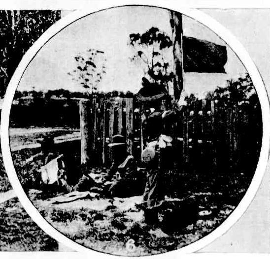 The usual hour of his return having passed, his wife became uneasy, and accompanied by her two daughters, grown up girls, went on the road to meet him. Hardly had they gone half a mile, when they came upon the cart, completely overturned in the bush, and lying upon the old man's body, the horse between the shafts, but on his back and so incapable of freeing himself. Poor Foley was brought home a corpse to the house, which he had so recently left in good health, and then an examination of the body showed that he had been the victim of some dastardly assassin. Two shot wounds, either sufficient to have caused death, were discovered in his back, piercing the body through. It would appear that the old man must have been sitting unconcernedly in his cart, as he passed the bush behind which his cowardly murderers were concealed and that, the moment his back was turned to the ambush, the felon shots were fired that sent the poor victim, without warning "unanseled, unanealed," into the awful presence of his Maker.