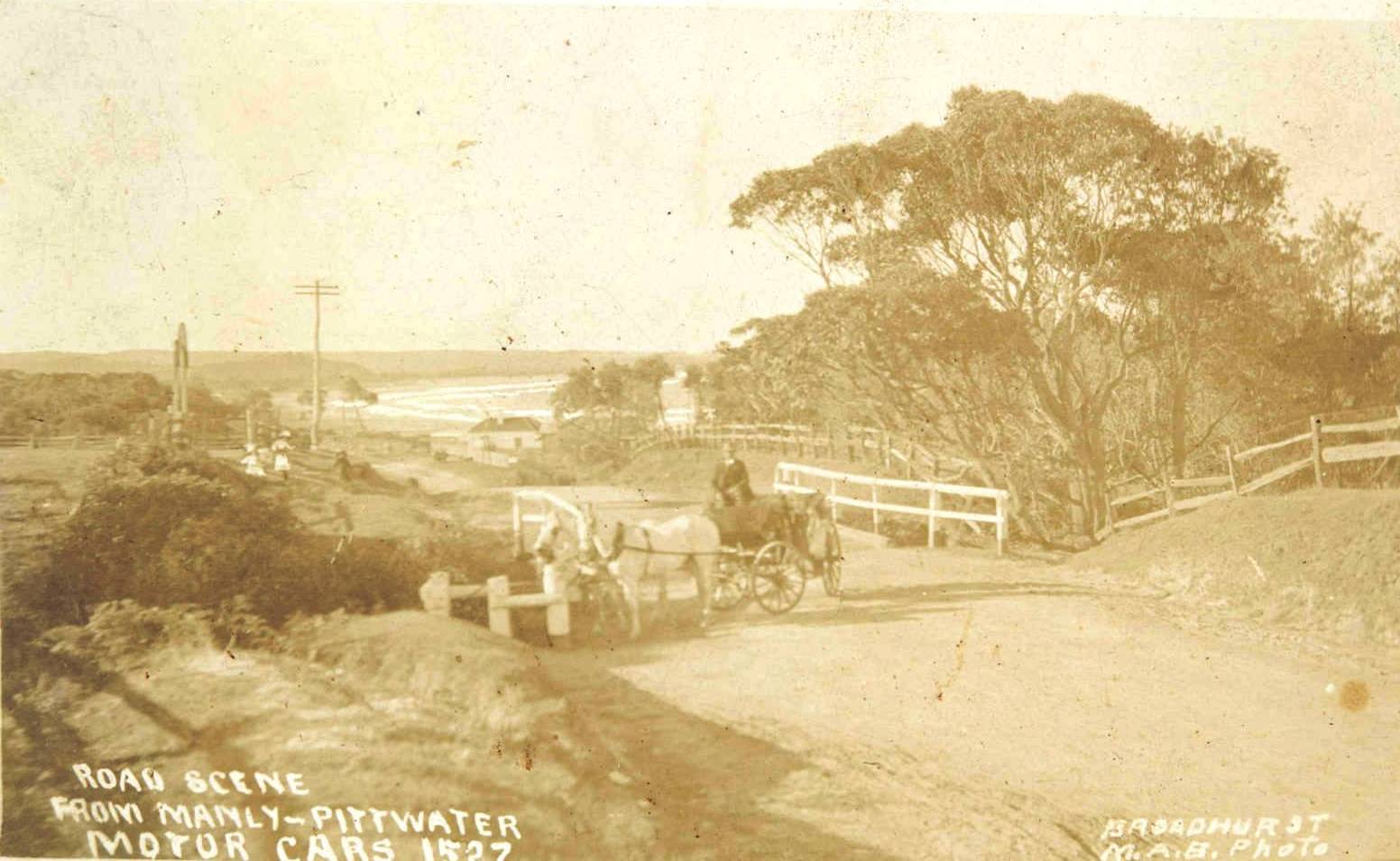 In the years up to the 1850s, before Henry Gilbert Smith started the transformation of Manly, the principal route to the north from Manly Cove followed the traditional Aboriginal line which created Old Pittwater Road, now in part known as Balgowlah Road. Until sub-division of the 1840s farms took place under Smith, Pittwater Road was a poorly maintained access road, a subsidiary to Old Pittwater Road for north-bound traffic and not yet much frequented by tourists enjoying the harbour and ocean beaches. Even after Pittwater Road was adopted officially in 1860 as a government road to the north, it remained a ‘rambling sandy track’ into the twentieth century.