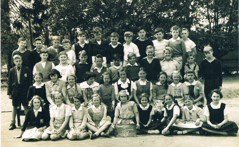 Above: Sixth Class at Newport, 1952: Back Row; (L to R): unknown, John Ashford, Peter Butler, Frank Le Clercq, Arthur Robinson, David Cause, unknown, unknown, Alan Emery, David Whistler, Bruce Ford, Leigh Haines. Third Row: Aubrey Golden, John Pennings, Tom Gilbert, Tony van Burger, David Parsonage, David Trotter, David Page, Bob Commeys, Bob Hessnick, Bruce Foreman, Rodney Mitchell. Second Row: Julie Pownceby, Rachel Lloyd, Susuan Rowe Janie Mercer, Renee ?, Sue-Ellen Terry, Jan Coleman (now Roberts) Jenny Pennings, Robyn Daly, Sue Owens. Front Row: Colleen Price, Mary Brammell, Barbara McClintock, Nan Campbell, Judy Jones, Heather Cleland, Heathear Smith, Shirley?. Courtesy Jan Roberts, from Remembering Avalon, Ruskin Rowe Press.