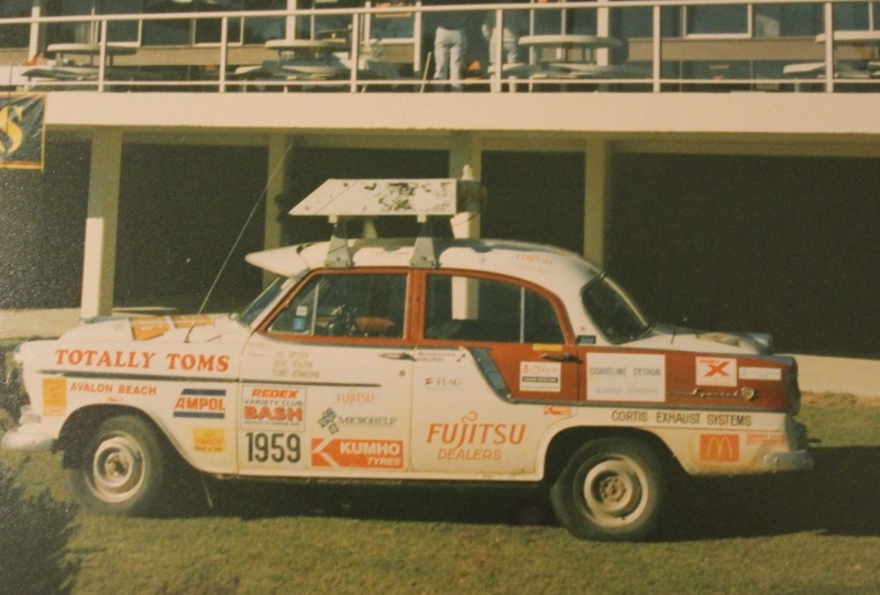 Tom sponsored his then apprentice Joel Weedon in the Variety Club Australia Bash of 1989 from Bourke to Burnie. Here the car is at Palm Beach Golf Club, where Tom was a member, a Holden Special!