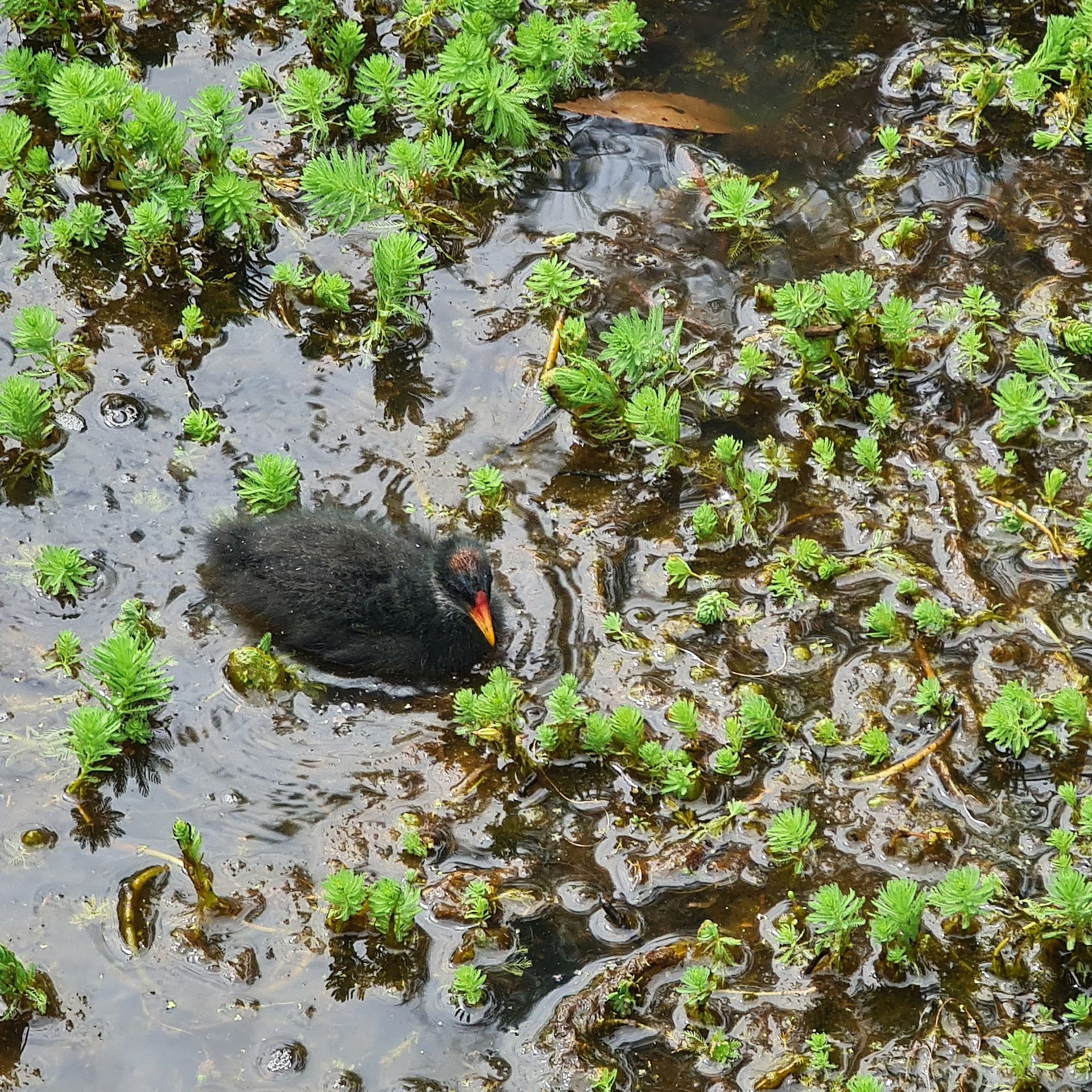 Warriewood wetlands: swamphen mum and bub (hiding behind sticks)