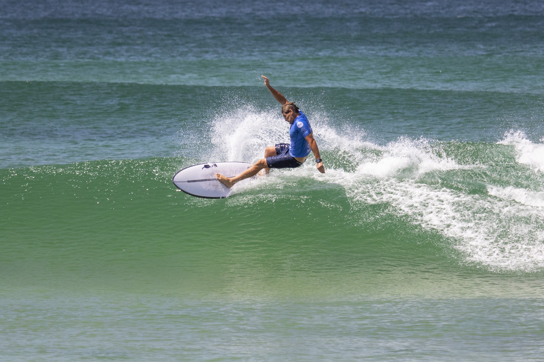 Former Australian Champion and Cronulla stalwart Glenn Pringle (Cronulla) ensured a title would remain on local turf, taking out the Over-50 Men’s division. Pringle shone in the final, posting a respectable 14.10 two-wave total for a variety of giant swooping turns.